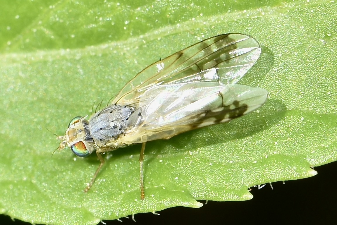Les Tephritidae sont des Diptères de petite taille aux couleurs contrastées également appelées « mouches des fruits ». Leurs ailes en particulier présentent des motifs bruns ou noirs. Les femelles ont un ovipositeur à l’extrémité conique très sclérifiée et munie d’épines de chitine qui leur permet de percer les végétaux où elles pondent.